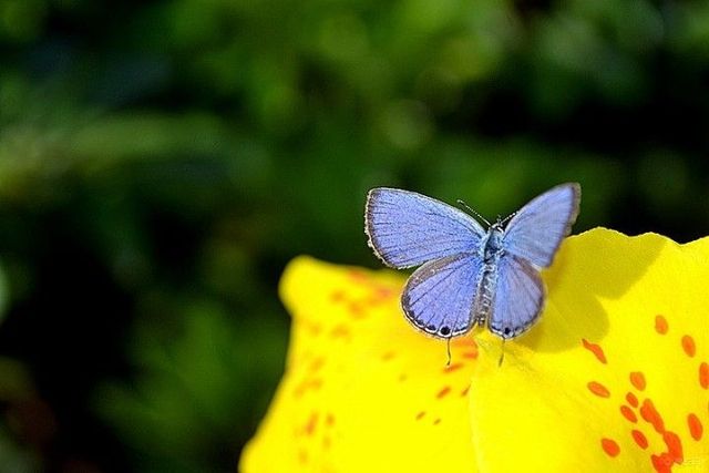 我小心的掀开不知名植物的一角..看到一只姿态轻盈闪烁着微茫的灵蝶停留在那儿..