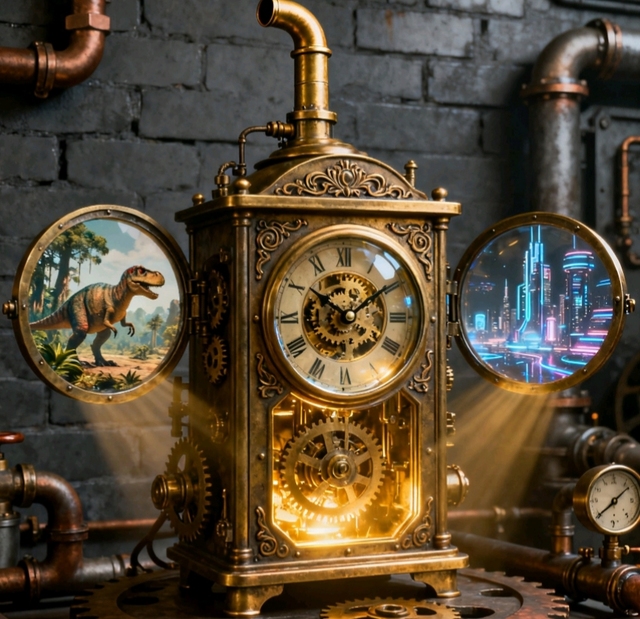 光头强把时空之钟翻过来,后面果然有个可以调的时间表,现在上面显示2025年10月9日14点24分16秒