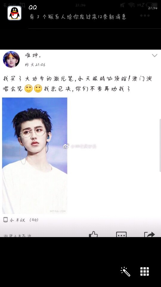 我想在这里对蔡徐坤的粉丝说