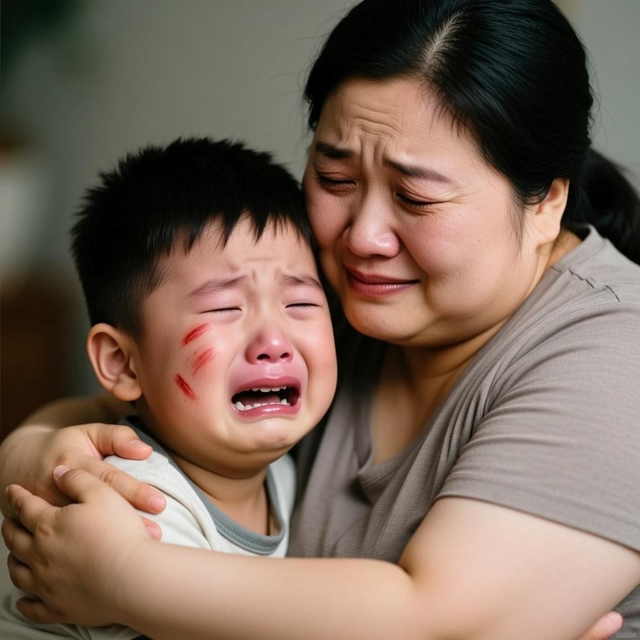虎子还在抽噎,脸上有几道浅浅的红痕,他的母亲正心疼地搂着他