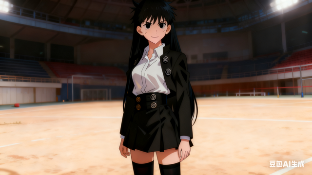 去洗漱完,换上高专校服,上身里面是白色衬衣,外面是黑色小外套,纽扣是漩涡状的,下身是黑色高腰裙,黑色过膝丝袜