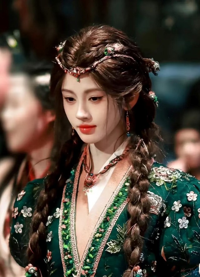 谢念初不喜欢穿谢家标志性的暗紫色衣裙,不出任务时候,她总是梳着较软的双麻花辫,发件红绿珠饰随着步动摇晃,红宝石额饰衬得杏眼水光潋滟,正红唇瓣像是沾了朝露的花。墨绿衣裙绣满银花,领口红珠项链随着呼吸轻颤,活脱脱一副娇憨闺秀模样。