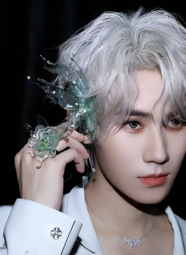 他穿着深色西装,身姿挺拔如松,银发在昏暗的光线下泛着冷光,琥珀色的眼眸里没有任何情绪,像一尊没有感情的雕塑。