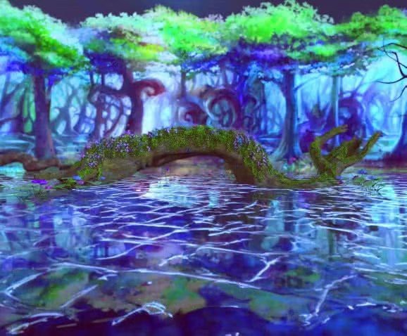 水王子坐在一个长满青苔的树桩上,那树倒在净水湖中央,看这古树的样子,它倒在这里也该有个上千年了吧?也不知是何人将这么一棵古树给砍倒,弄到净水湖的。