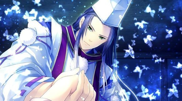 闪闪发亮的蓝蝶,满室飞舞的淡蓝光芒,白衣的儒雅男子,那因夜露沾湿而变得黑亮的黑发引人注意。