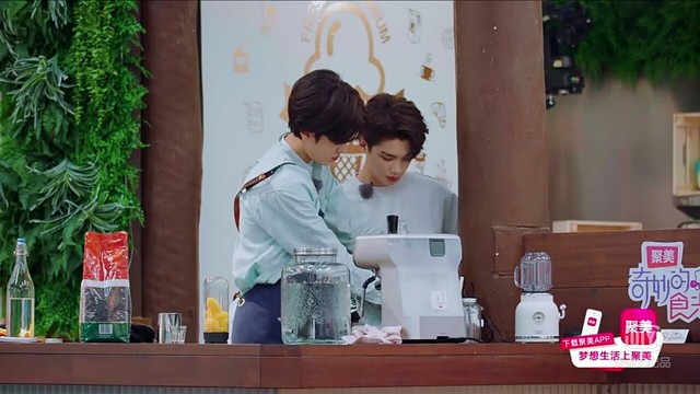 昊昊瞄到张莘韵在烤箱旁投来关爱的目光。