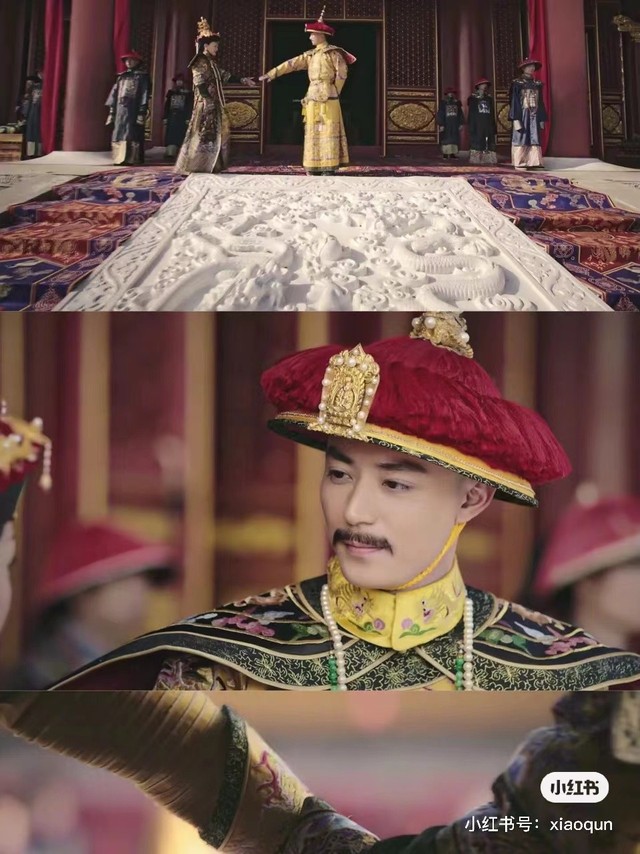 登基大典,大臣们鱼贯而入,身穿着整齐地朝服恭候在侧,马嘉祺黄色龙袍加身走向乾清宫