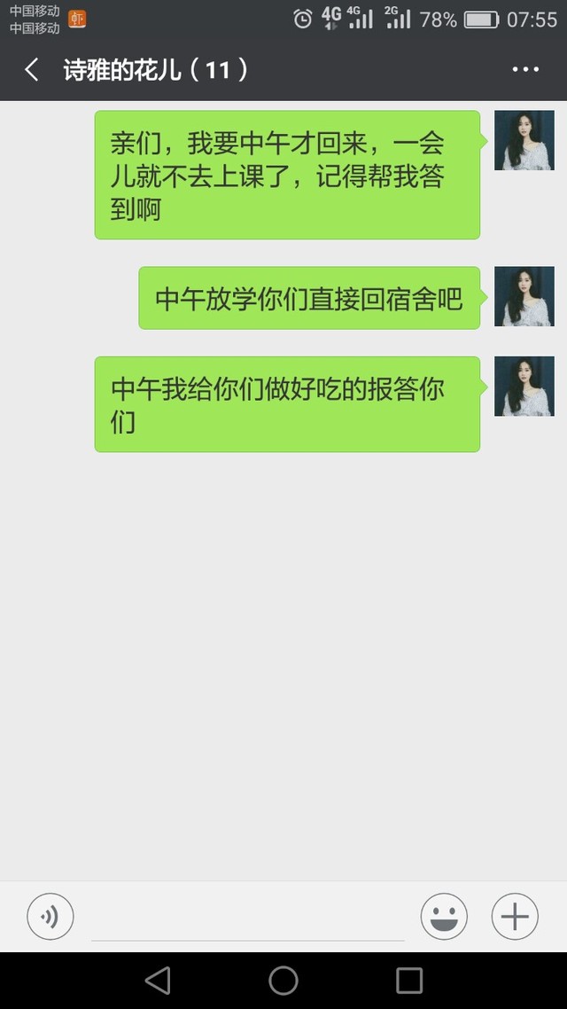 谢过师傅后,我把这些东西慢慢搬进宿舍我的房间。就回房间了。躺在床上在群里发了几条消息。