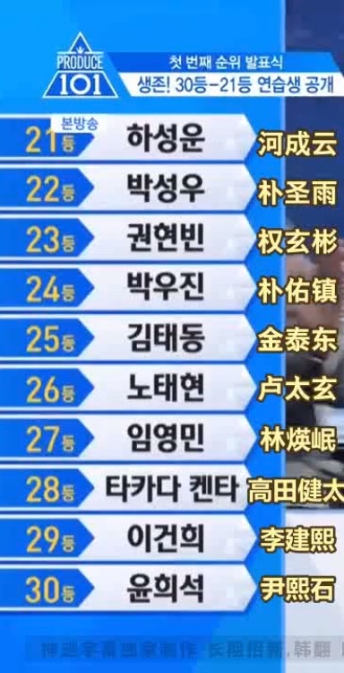 接着发表的是40-31等,金东汉拿到了37等;金龙国34等;乐华的Justin也拿到了31等