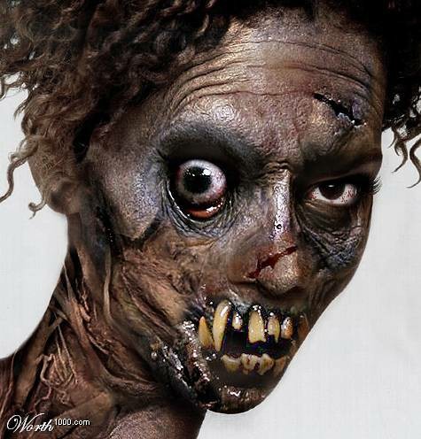 当他们转过身的一刹那一个放大的(恐怖的)脸。