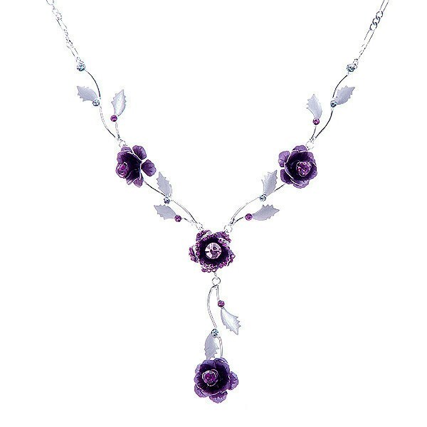 紫水晶项链是由四朵紫色彼岸花组成,做工精致;还有十片银色的叶子,衬托出彼岸花的炫彩……