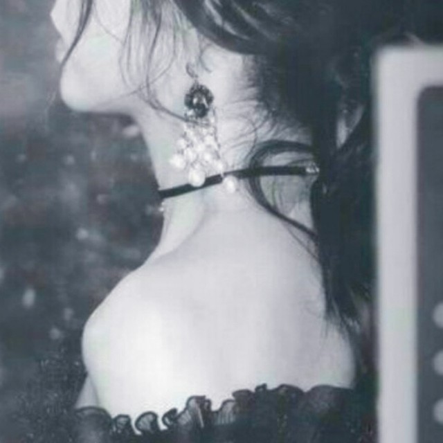 林千荨却穿了一身黑色抹胸蕾丝花边裙