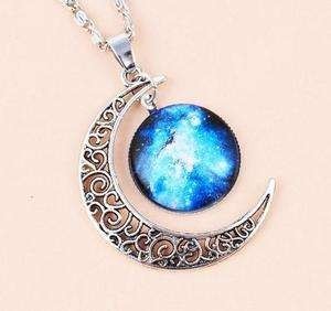 月亮的中间点缀着天蓝色的银河