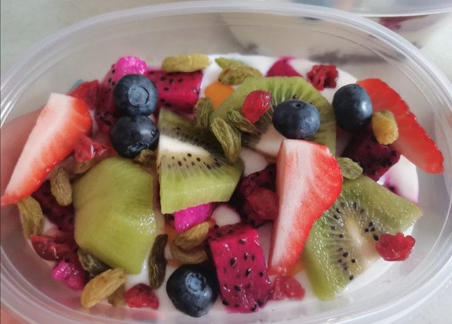 李晓雅过来吃水果捞了,别玩了,吃完在玩