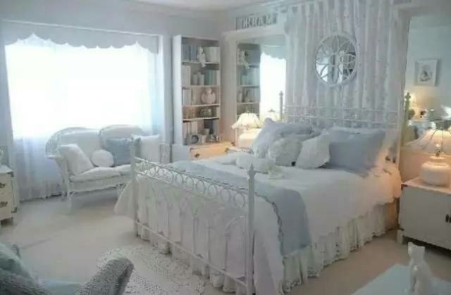 林流星坐在全部都是蓝色系的的床上,周围的一切都是蓝色的,就像是飞在天上一样。