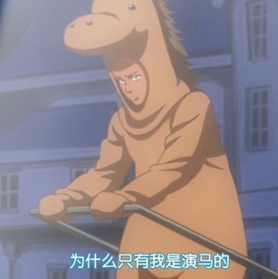 灯光又投到扮演马的胡狼桑原身上,他拉着蘑菇车一脸幽怨道