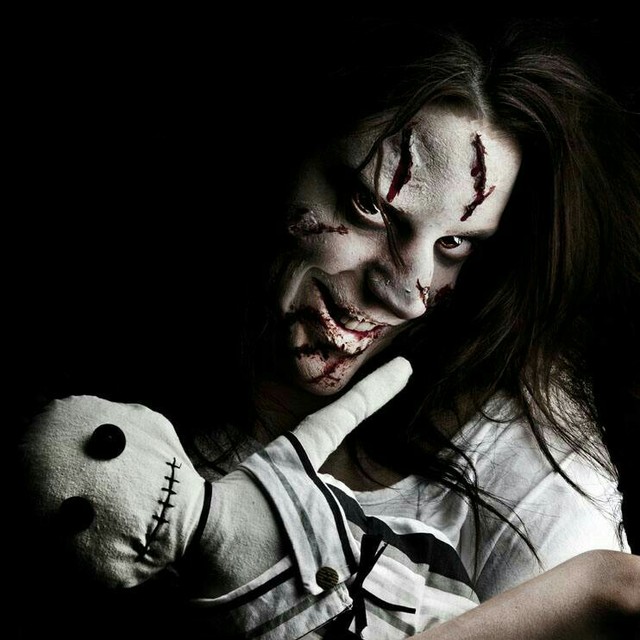 女孩虽然长得骇人,笑起来却给人一种五六岁孩子天真的错觉