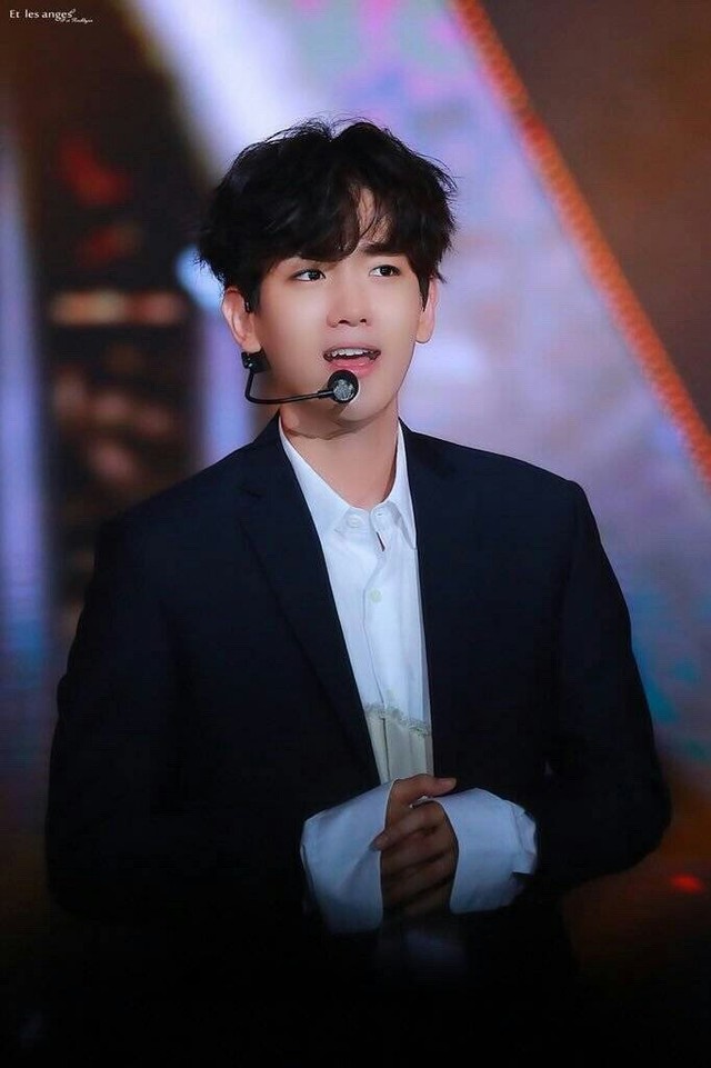 然后伯贤换好衣服之后就开车去接辰溪了,伯贤的造型是这样的