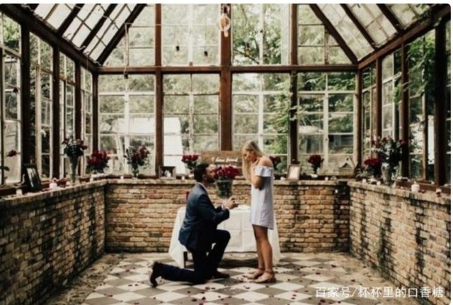四周以白玫瑰布置,地上用花瓣铺着一个大爱心,蜡烛为其点缀,吴亦凡单膝跪地,手里举着戒指