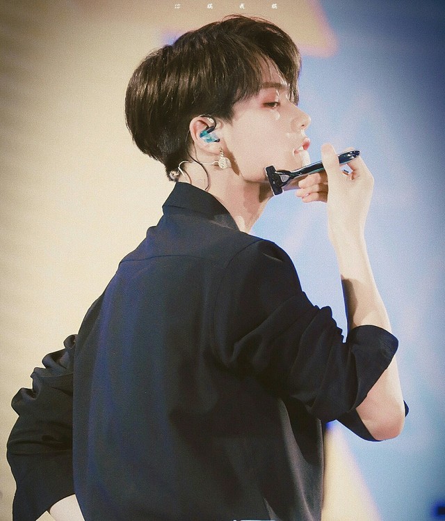 林彦俊刮胡子啊,要不然摆pose啊