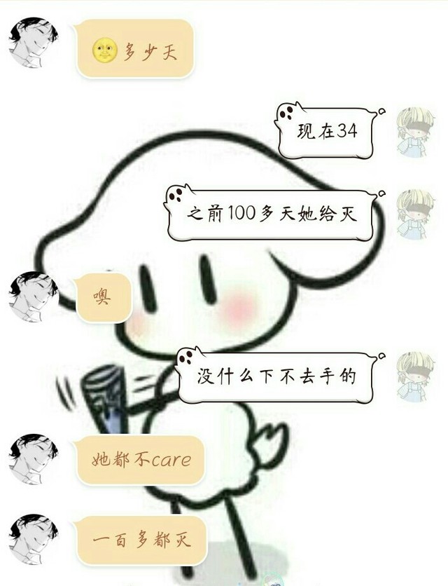 连续好几天阿狗只跟蛋蛋发早来维持火花,蛋蛋一直在找话题,无论蛋蛋说多少,阿狗都不理,在群里聊的那叫一个嗨。后来蛋蛋有点生气了,也不再说话,只说早。