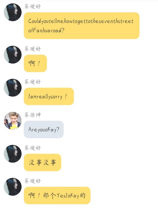 蔡徐坤你似乎是感到抱歉低下头去轻轻应了一声便走了