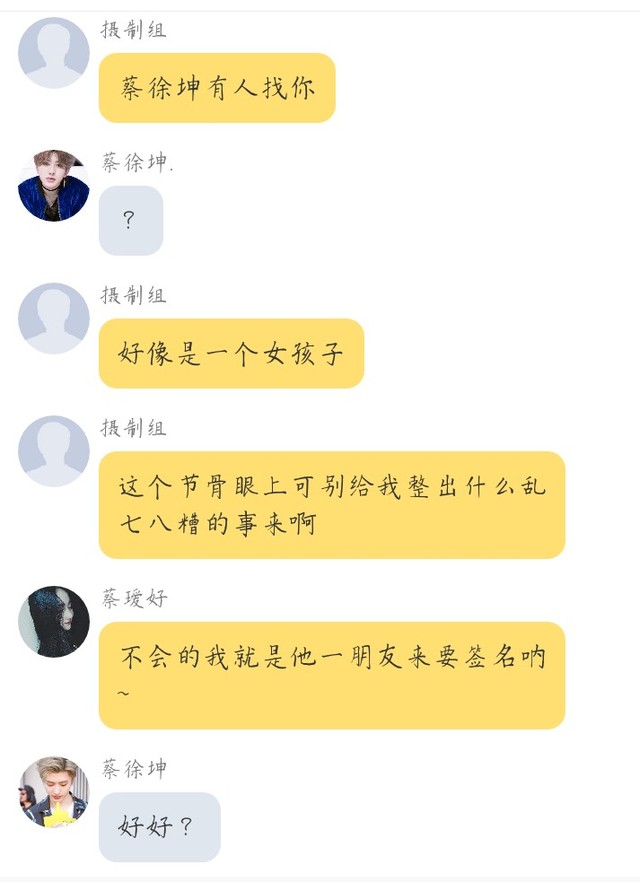蔡徐坤你的短信在节目开始前一天发送到我的手机里
