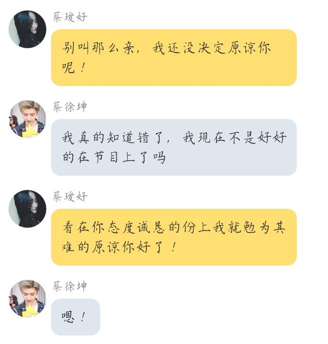 蔡徐坤你说还没原谅我的任性看我节目里的表现再决定要不好跟我好