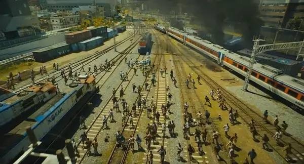 在一条破败不堪的马路上,一男一女正在奋力的向前奔跑着,他们身后是成群的丧尸。