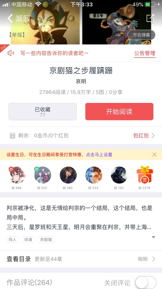 作者:金币贡献榜第一名@北忆風!南瓜贡献榜第一名是@哀明天堂!截止到发布完这章节为止,本作的阅读量达27964,收藏77,评论264,字数15.9万字!