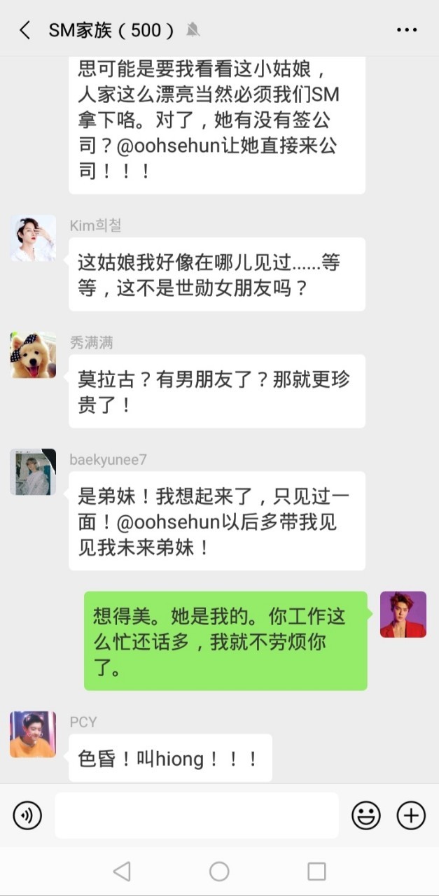 张若琳“那是五年前和SM合作的时候。当时出席酒会的人员有XO,当时一眼就觉得他真的是天赐的颜值。一下就迷倒我了。后来借机跟他接近以交朋友的理由要到他的kakaotalk号了。”