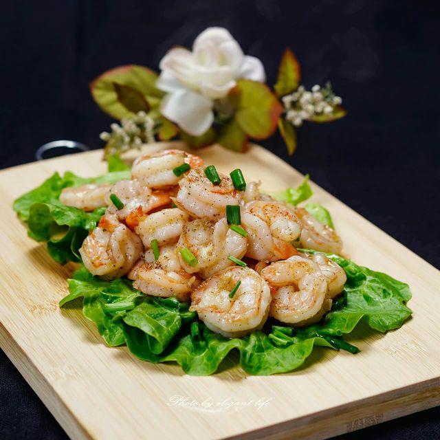然后大家都在吃饭了,突然糖糖吃着吃着,碗里多了一个被剥了壳的小龙虾,糖糖疑惑的看着小龙虾的来源