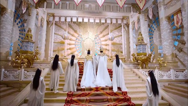 众仙闻言,皆站起身来,恭迎天帝、天后。