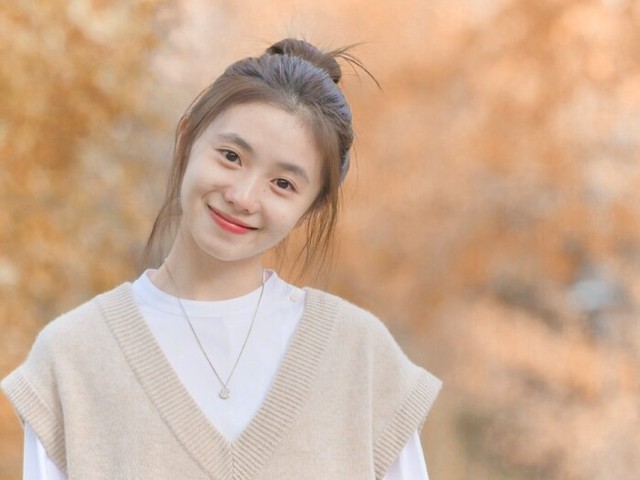 她站在对面,扎着高高的丸子头,画着淡淡的妆,秋日的风将路旁的银杏叶吹落,女孩子笑的很甜,嘴角微勾的样子,一切就像是一副完美的画卷