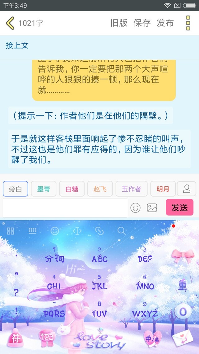 墨青你知道吗?白糖?武松你们知道吗?就连隔壁的作者们都被你给炒到了,整座楼也许就是被你们给吵醒的。而且你们说那么大声干嘛?你想让我揍死你吗?在你们吵架的那一瞬间,我们整座楼都被你们吓醒了。我来之前所有人包括作者们告诉我,你一定要把那两个大声喧哗的人狠狠的揍一顿,那么现在就…………