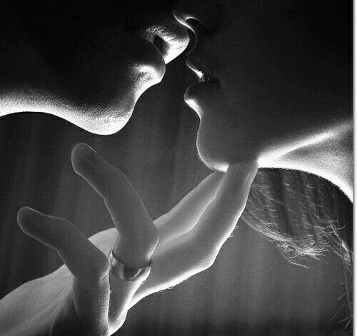 他低下身子,向你抚去,你原本离他就很近,现在为了不让他亲到你,你只好向后面倾斜。
