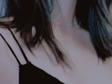 她的黑色礼服漏出肩头,居然好巧不巧的和你撞了,同样都是黑色礼服露肩。