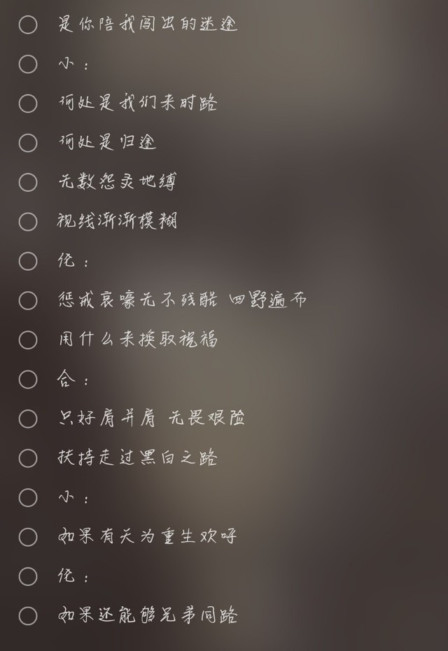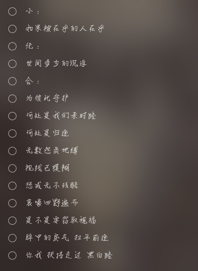 (怎么分配…按全民k歌里面的,不想截图,就这样吧,歌词都是来自酷狗)
