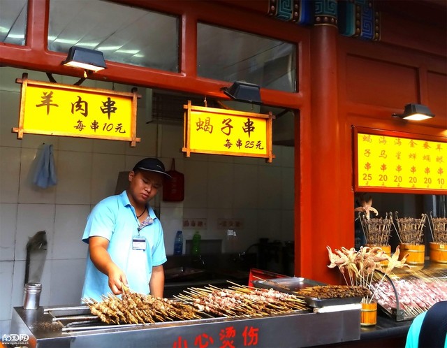 老板从这边直走右转有个小巷,那里有很多小吃