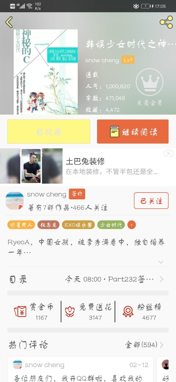 谢谢大家的支持,《韩娱少女时代之C》的阅读量已经突破100万啦!👏我在群里也说过,要是突破百万就会连更四章庆祝一下,也请大家多多支持C还有我的其他作品哦~真的非常感谢你们😘