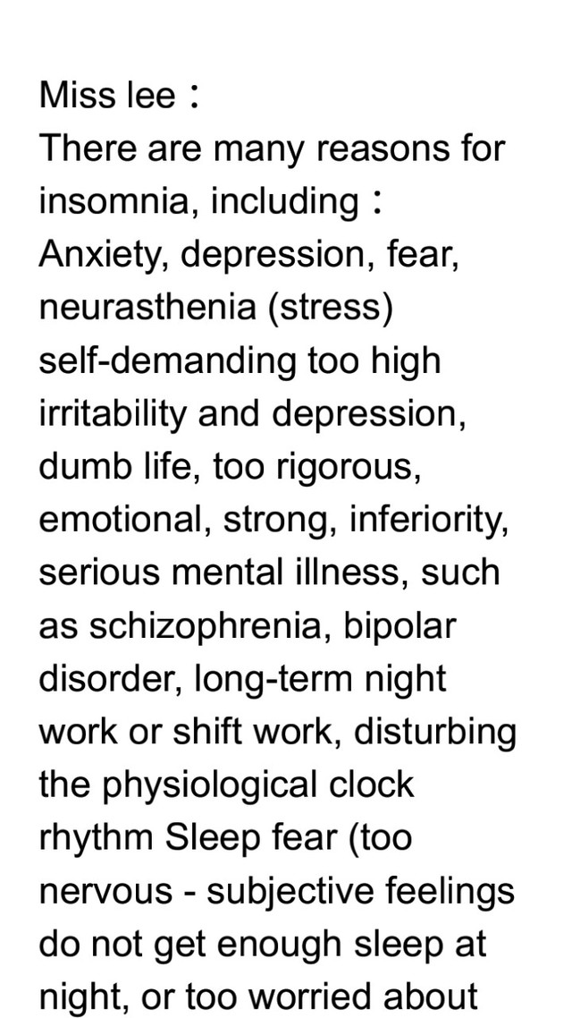 李藍汐其實失眠的原因有很多,包括以下哪些:焦慮、憂鬱、恐懼心理神經衰弱(壓力)自我要求過高煩躁和憂鬱症沉默寡言生活太嚴謹情緒化強烈自卑感嚴重精神病如精神分裂症、躁鬱症長期夜間工作或輪班工作,使生理時鐘節律受到干擾睡眠恐懼(太緊張-主觀感覺在夜間得不到適量睡眠,或太憂慮怕失眠)