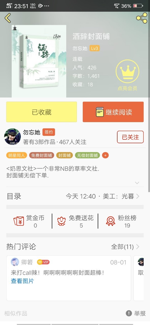 嘤千璃“还有这个封面铺,强力推荐做封面绝对的,首单无偿赶紧来下单。🙈”