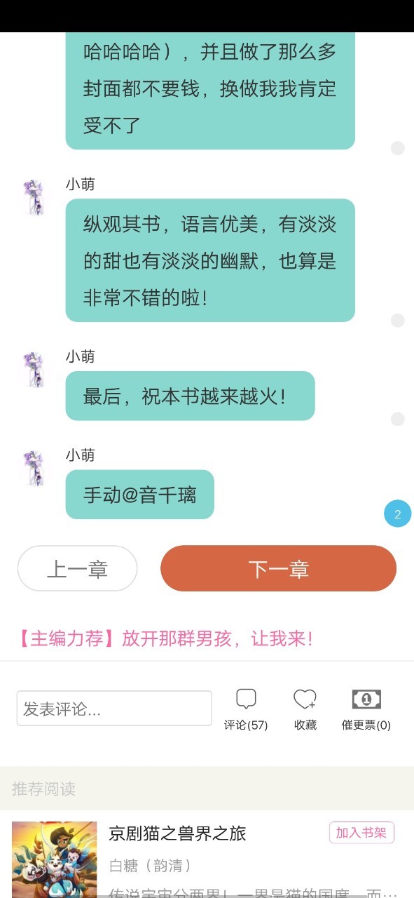 “感谢以上两位小可爱哈~~”