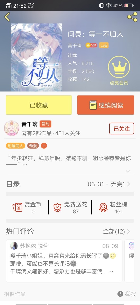 嘤千璃“《问灵:等一不归人》简介如下。”