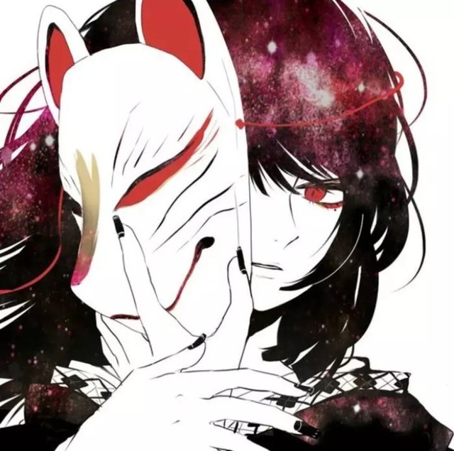 作者面具下的面孔,正在用血色的瞳孔,无情的表情,以看弱者的姿态看着你。
