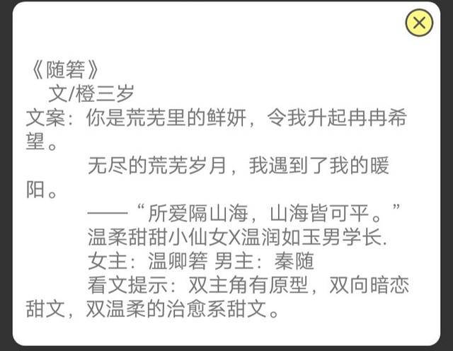作者君隔壁《随箬》开文,点进主页栏就能收藏,确定不入手吗?