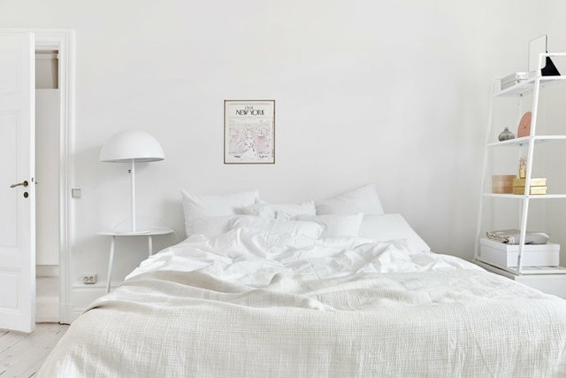 在这间昏暗的房间里有一张简单的白色木床,上面躺着一团被毛毯包裹着的小人。