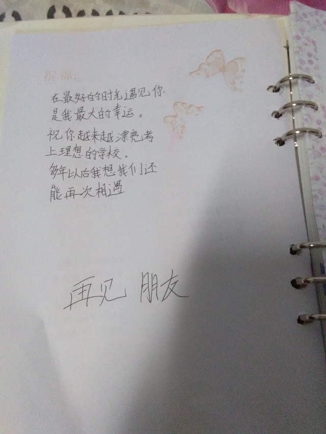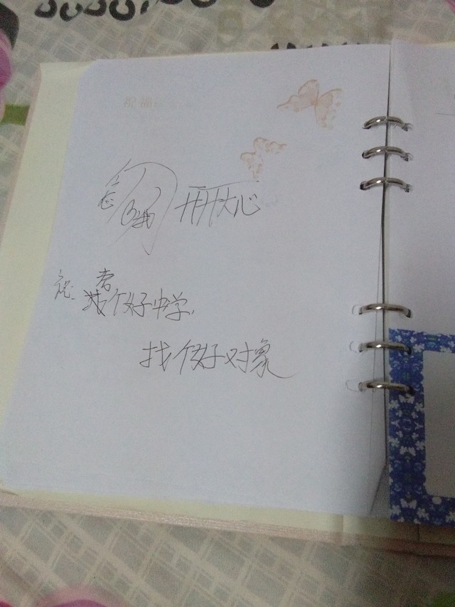 作者我真的很想她,我们小学是一个班级,一直都是。我发一下我的毕业照和她的同学录,还有一个她以前给我写的纸条,我也不知道是什么时候写的,我是在我的书包里找到的。