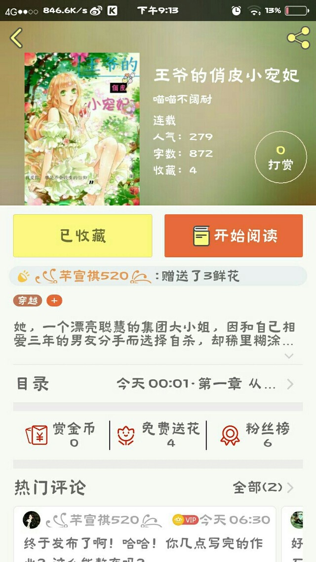 芊宣祺嗯。写了一章