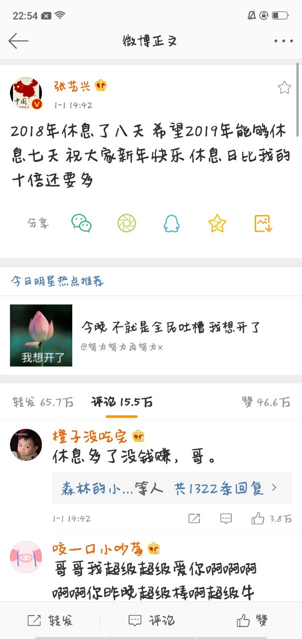 开完演唱会的张艺兴并没有马上得到休息。因为在2019年1月1日。他发表了一条微博说道: